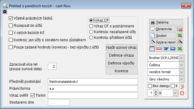 Tisky -> Přehled o finančních tocích - CASH FLOW