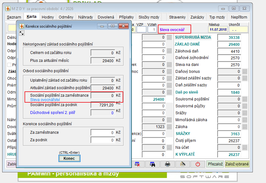 Následně, když se založí mzda pro tohoto pracovníka, bude mu automaticky vypočteno snížené sociální pojištění