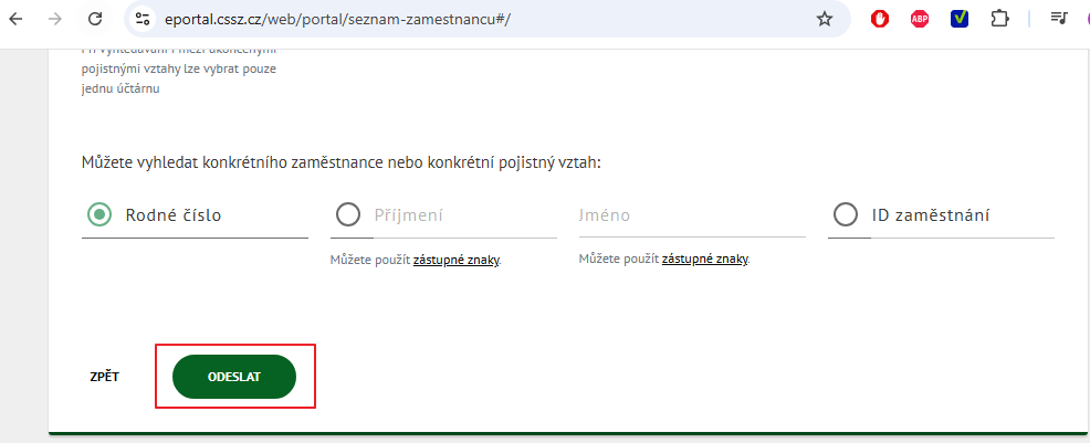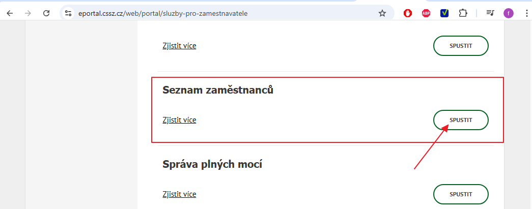Otevřete z horní lišty ONLINE SLUŽBY -> Pro zaměstnavatele