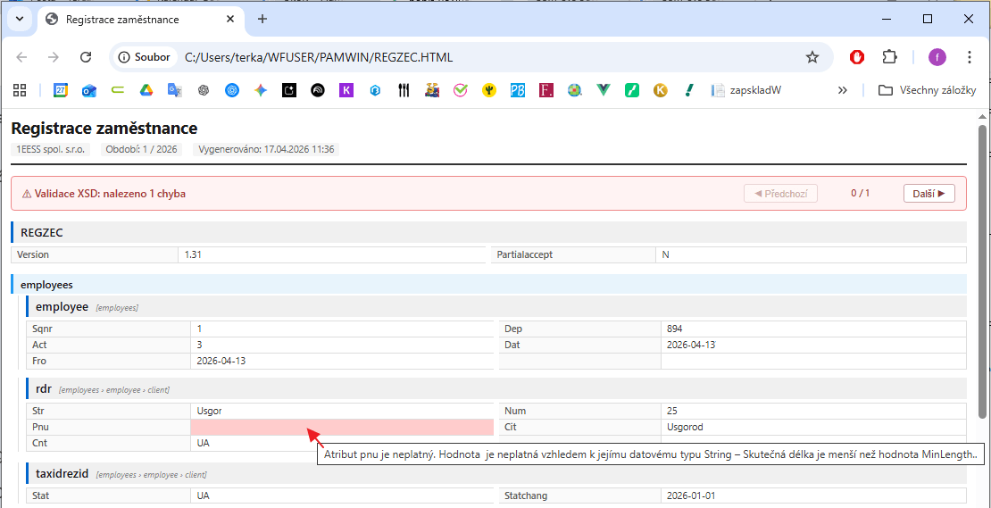 Identifikace chyb v XML - JMHZ a Registrací zaměstnanců